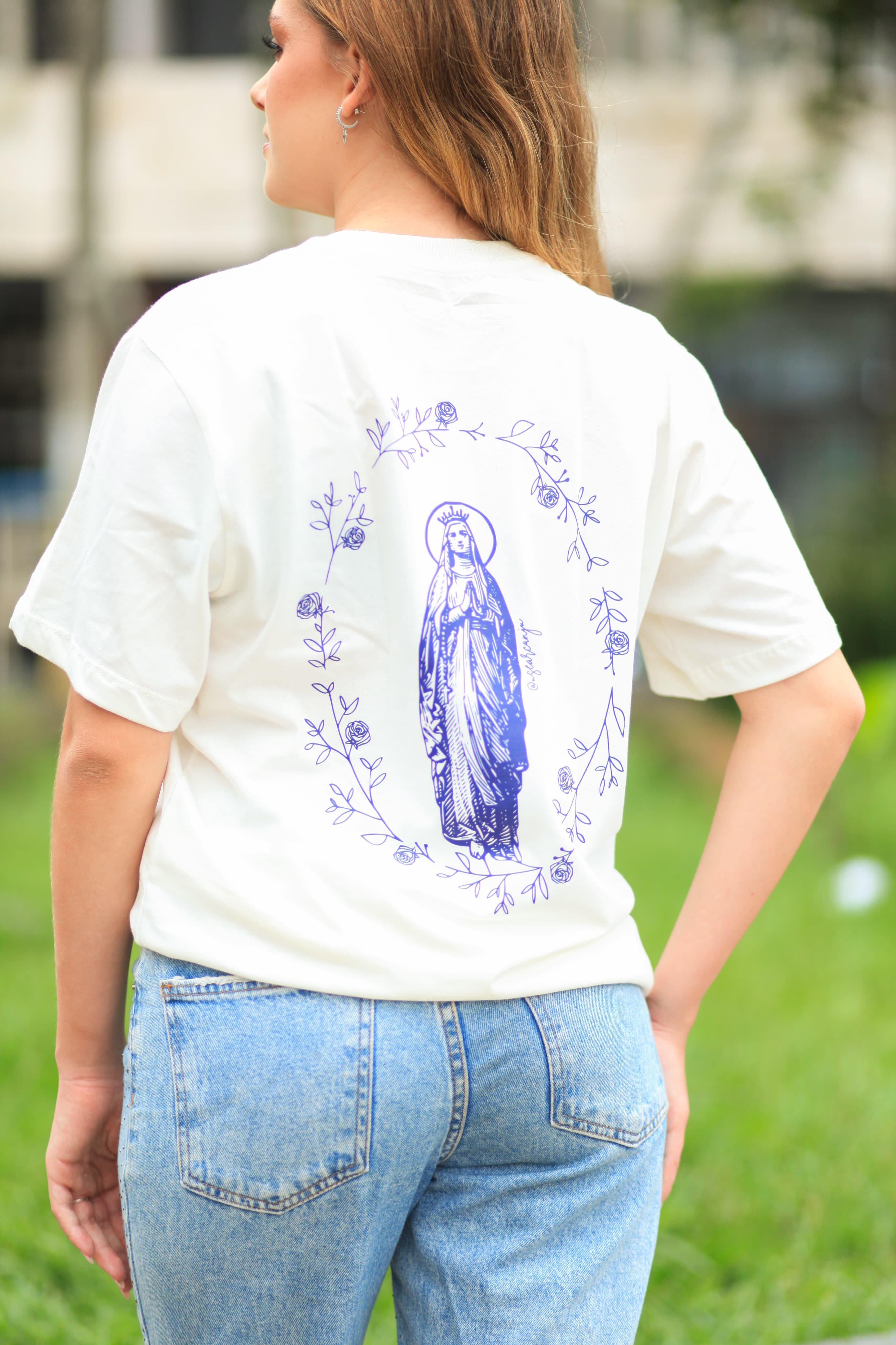 O toque suave do tecido, o caimento leve e a mensagem inspiradora te lembram — a cada vez que veste — o quanto é lindo viver a fé no dia a dia. Feita para o dia a dia, pensada para a eternidade.